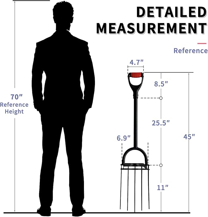 - 【HEAVY-DUTY MANURE FORK with Forged Steel Head】- Featuring an integrated forged steel fork head and a high-strength handle, our manure fork is built to tackle sticky or rocky soil without breaking. The 45-degree sharp tines ensures optimal control and comfort, perfect for heavy-duty digging tasks. You'll appreciate its sturdiness, ideal weight, and sharpness.