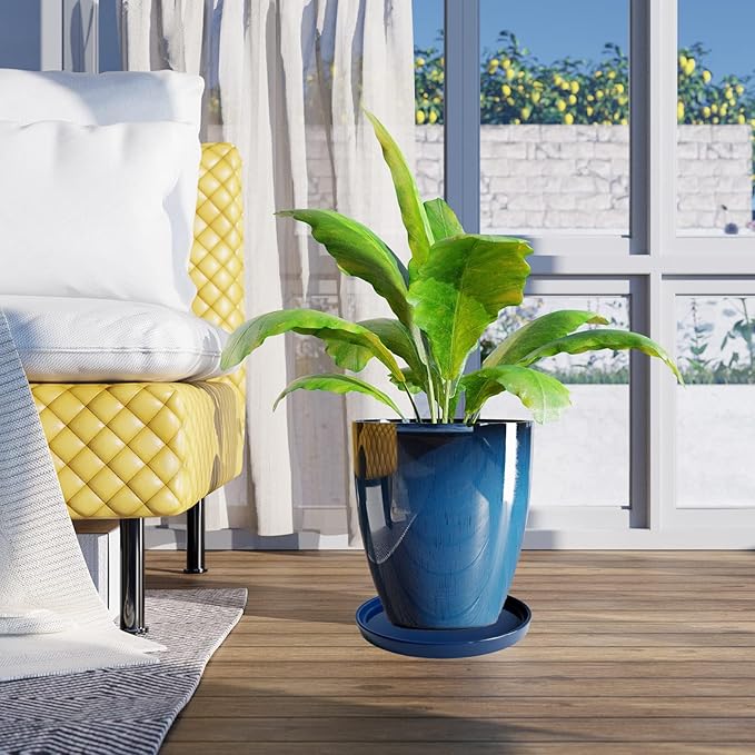 Ceramic Plant Saucer Pot Tray 10 Inch, Planter Saucers 4 5 6 7 8 9 10 11 12 13 Inch for Indoors Outdoor, Durable Sturdy Flower Drainage drip Water Tray for Glazed Pots Base (10.7 Inch-Blue)