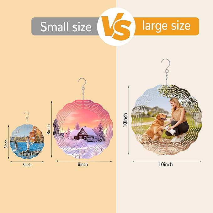 - STURDY MATERIAL — Our hanging wind spinners sublimation blanks are laser cutting with smooth surface and edges won't hurt you, which ensure pattern integrity; Making of thick aluminum,easy to unfold, featuring high strength, durable, waterproof, and vivid shape; The aluminum metal wind spinner covers epoxy protective coatings for maximum rust and corrosion resistance, excellent weather resistance, and when placed outside, Don't worry about cracking or fading caused by changing weather.
