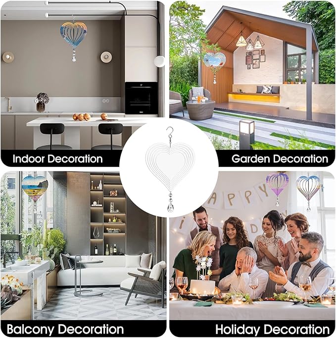 Sublimation Wind Spinner Blanks 8 Inch 4 Pack Wind Spinners Sublimation Blanks with Crystal Pendant Aluminum Metal Wind Spinners for Yard Garden Indoor Outdoor Window Porch Decoration(Heart