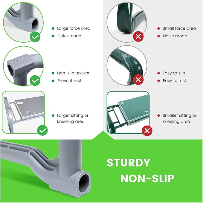 - 【Light & Durable & Came Assembled】Compared to the standard 10X5 inches, our seats are 14X10 inches wide with a unique upgraded widened Thick kneeling pad! This Garden Kneeler and Seat folds up easily and Compactly thanks to a quick folding mechanism,Easy to carry and storage, the seat can hold up to 350lbs.