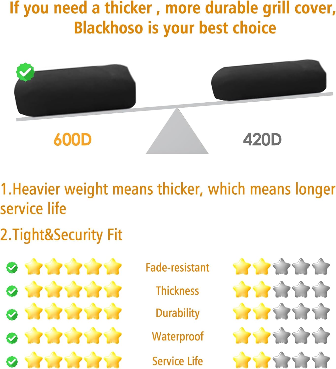 - Material: The Treager flatrock waterproof grill cover is made of 600D high-density oxford fabric with an internal PVC coating, can protect your grill from strong winds, storms, sunlight, snow, dust, and debris, durable and long-lasting. Has good UV resistance, color fastness, waterproofing, low temperature resistance, and tear resistance functions