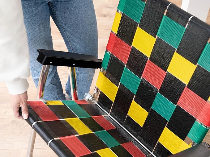 - Handmade In The USA: Our chair features hand-woven straps with a mechanical stitch for superior durability and an authentic handmade feel. Made with a sturdy aluminum frame, copolymer arms, and polypropylene webbing, ensuring long-lasting use and reliability