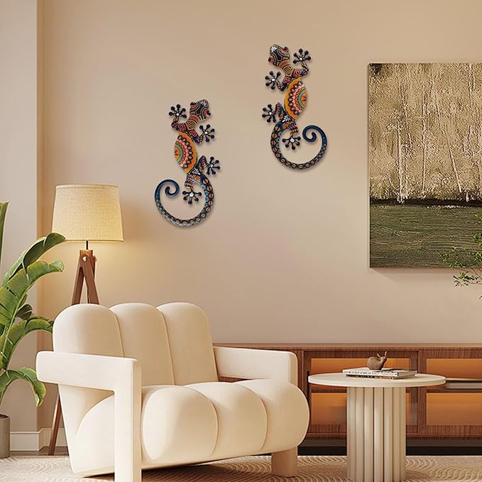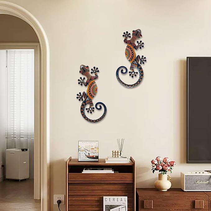 - A Pecfect Home Addition - Enhance your living space with this stunning set of Colorful Metal Gecko Wall Decor. Crafted with premium metal and a durable frame, these vibrant lizards will instantly liven up any room or outdoor area