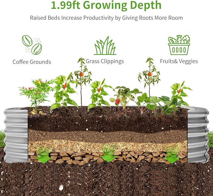 - Upgraded quality and structure: raised garden beds outdoor are made of Q195 galvanized metal sheet, double-layer anti-corrosion galvanizing and oval structure design, which is more beautiful, can withstand greater pressure at the interface, is not easy to loose, and the interface will not Deformed and can be reused for many years.