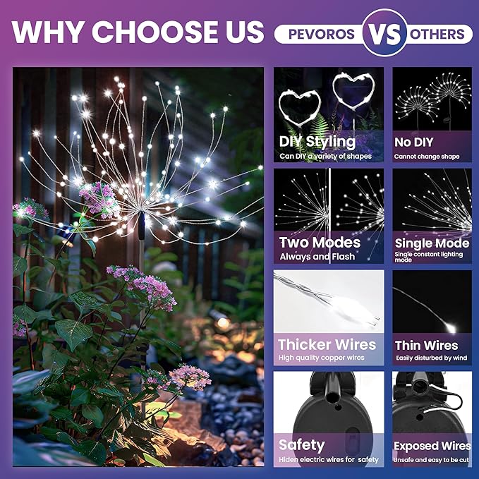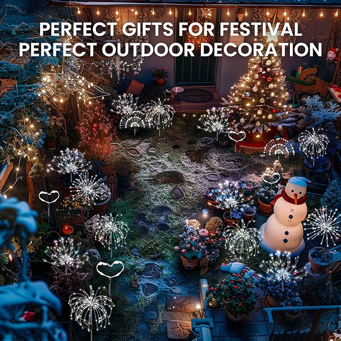 - Garden Decor, Festival Atmosphere Maker: Featuring solar garden decor lights transmitted through fiber optics, outdoor solar lights create a mesmerizing fireworks effect. Perfect for setting the mood for parties and holidays, it adds a touch of magic to any celebration