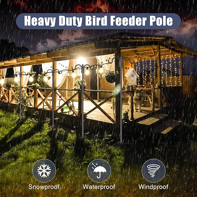 - 【PREMIUM QUALITY】The heavy duty steel make bird house pole not easy to bend and deform when encountering strong winds. Powder coated prevents rust effectively and makes it more durable. Retro shape and classic black look of the shepards hook outside add beauty and elegance to your garden. Simple design make the premium mental hooks easier to integrate into the garden scene, and can be match with more hanging items.