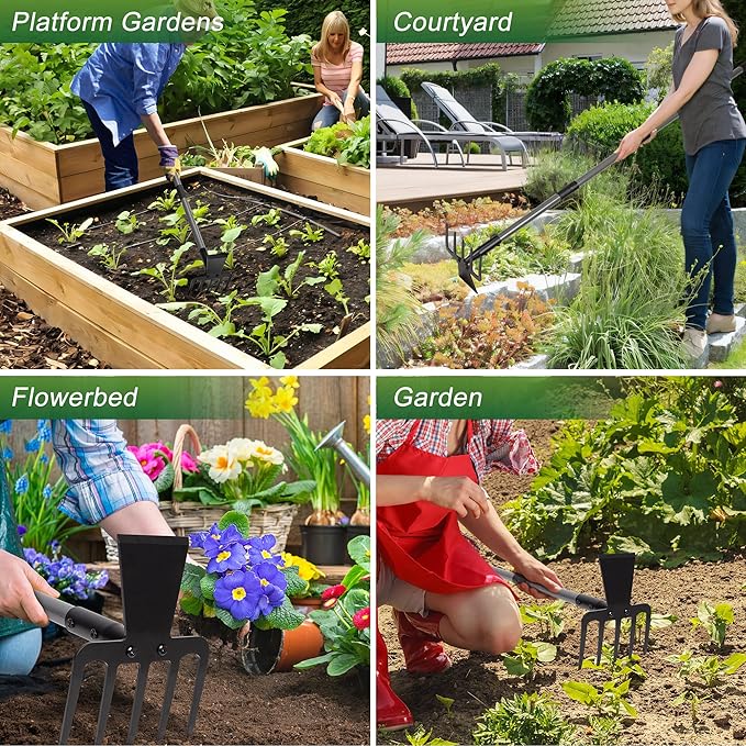 - 2 in 1 Garden Hoe:Walensee 2-in-1 Garden Hoe Cultivator with 5-Tine Rake is a versatile gardening essential that revolutionizes your outdoor chores. Its widened hoe and five tines design vastly extends your working reach, streamlining tasks and significantly reducing the time spent on gardening, landscaping, weeding, digging, seeding, soil loosening, vegetable cultivation and weed eradication. Experience the ultimate in gardening convenience and efficiency with this must-have tool.