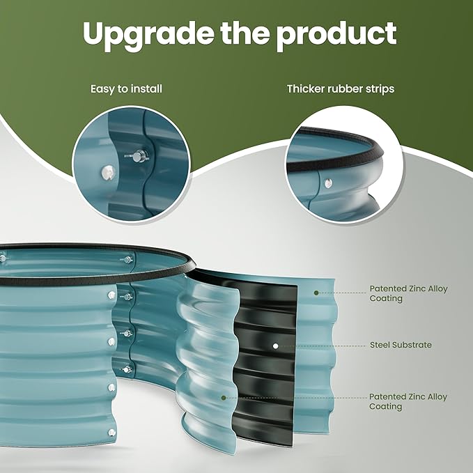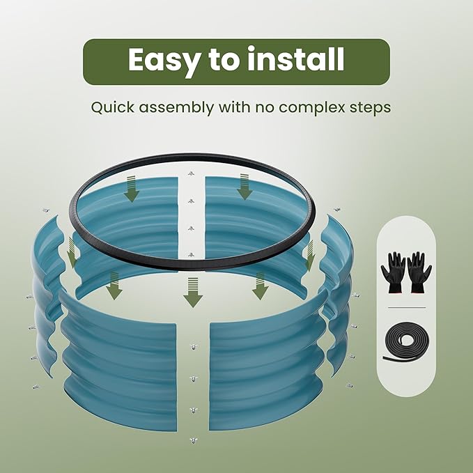 ZXZYHFTY Round Galvanized Raised Garden Bed kit, Blue Outdoor Garden Raised Planter Box, Round Large Metal Raised Garden Beds for Vegetable 2 * 2 * 1ft 3 Pcs