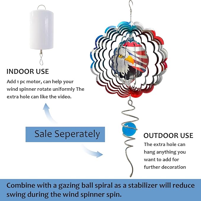 - 【Durable & Beautiful 3D Wind Spinner】The Hanging Wind Spinner easily transforms into a 3D hanging wind sculpture. The stunning eagle ornament is made of sturdy stainless steel, boast longevity and resilience against outdoor elements, ensuring enduring beauty for your yard, garden, patio or lawn.
