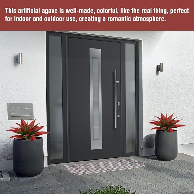 - Stunning wine red color: The realistic simulation effect of the wine red artificial agave plants exudes elegance and sophistication. Create a high-end atmosphere by combining them with green style desert or tropical plants for a stunning visual display.