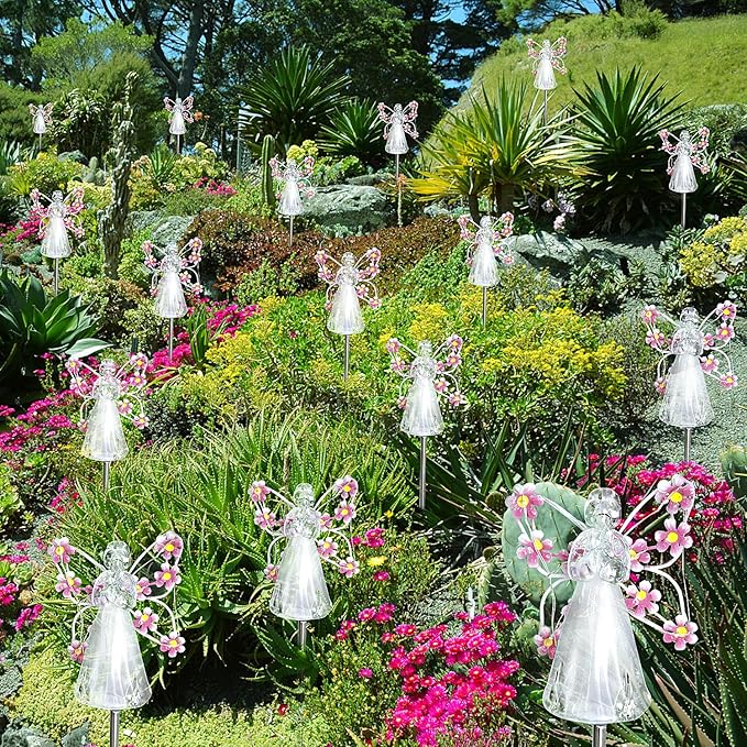 2 Pack Solar Firefly Lights + 2 Pack Iron Winged Angel Light Solar for Yard, Patio, Pathway, Lawn, Walkway, Camping, Pool, Solar Ground Lights Walkway Lights Deck Lights