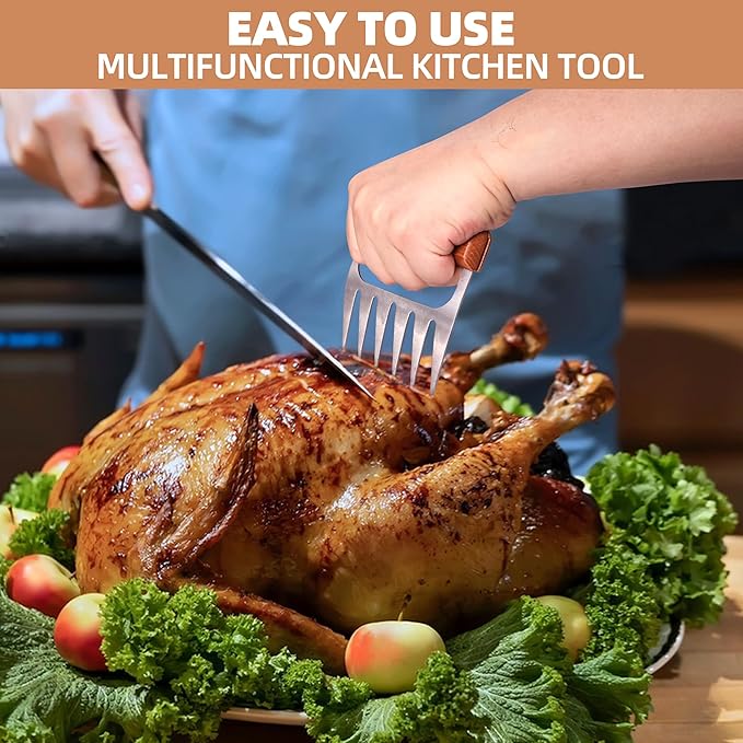 - Durable and Easy to Clean: This Barbecue Claw is Made Of Stainless Steel, Not Easy To Corrode, High Temperature Resistance, Wooden Handle, Non-slip. perfect gift for men and women who like BBQ & cooking.perfect gift for men and women who like BBQ & cooking.
