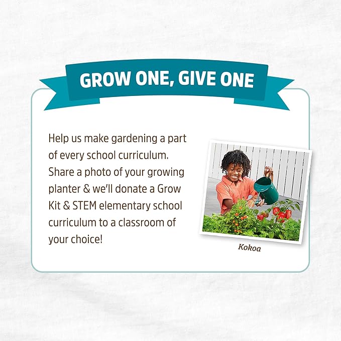 - GROWONEGIVEONE โ Help us make gardening a part of every school curriculum. Share a photo of your growing planter & weโll donate a Grow Kit & STEM elementary school curriculum to a classroom of your choice