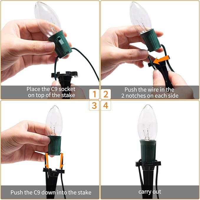 - Connectable C9 Pathway Lights: Easy to install with a cable tie or cup hook, fix it or place it anywhere necessary. Up to 3 strands(total 60 LED) connectable to optimize your need for larger area lighting and festival decorations. With the anchor spike plugging in grass lawn, the lights are definitely the blooming flowers in your garden