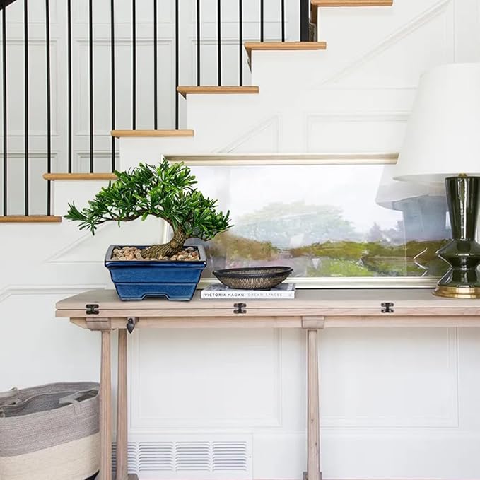 - BONSAI TREE WITH CERAMIC POTS - Artificial potted plants made of high quality PE material, non-toxic, no odor, durable, healthy and environmentally, Vivid color design and high simulation make small fake plant decor very layered and attractive. Mini bonsai tree not only a good home decorations, but also a good gift to your friends. Surprise someone special with one of our most popular artificial pine tree!