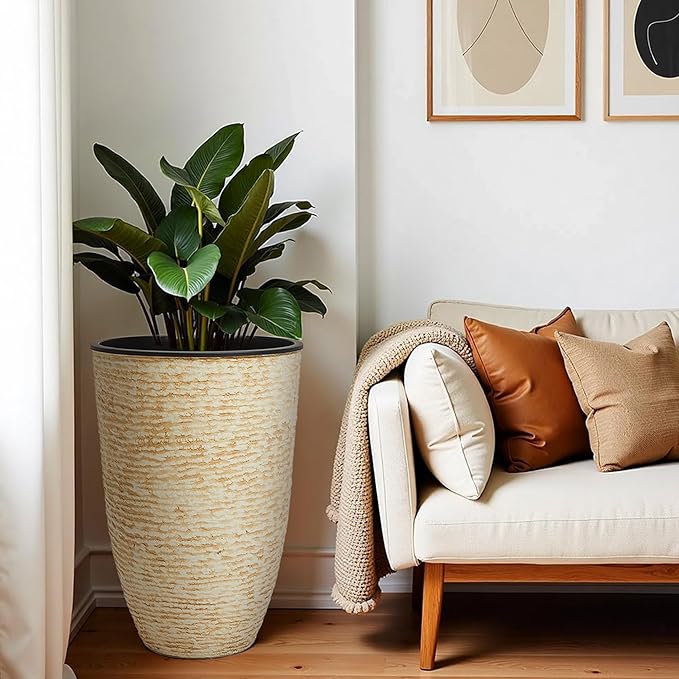 - Spacious Design: Each planter measures 21 inches in height and 14 inches in diameter, providing ample space for plants and trees; Made from high-quality plastic, 85% recyclable PP +15% stone powder, these planters are built to withstand outdoor conditions