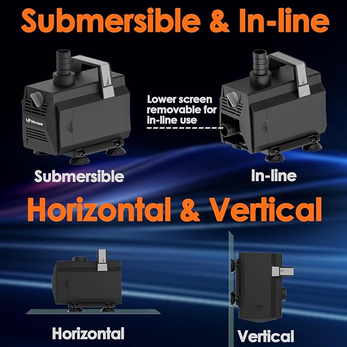 - WIDE-RANGING USES - Compatible with both freshwater and saltwater, this pump serves multiple purposes. It's ideal for aquariums, ponds, waterfalls, decorative water displays, fountains, hydroponics, horticultural projects, and water gardens.