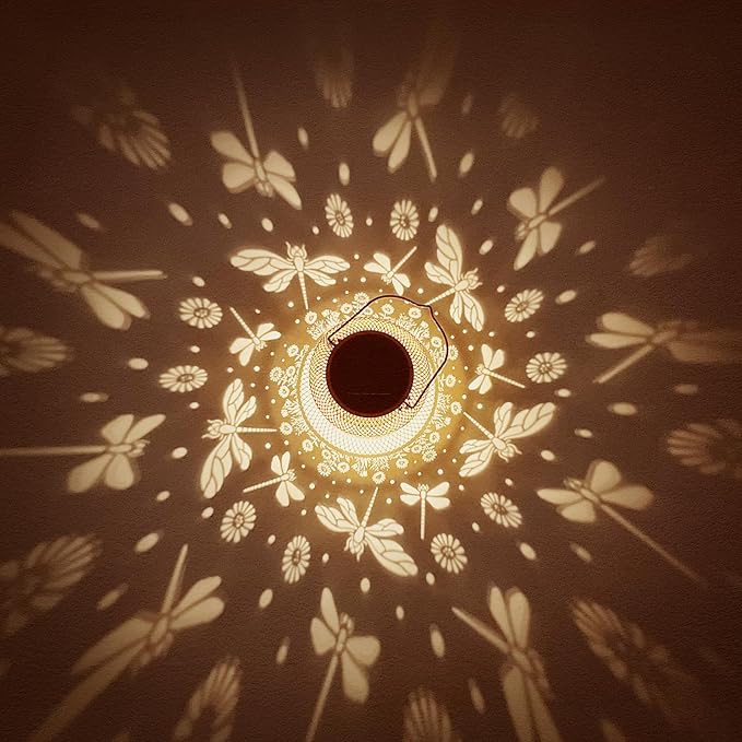 - Graceful Decorative Design - The retro appearance, with gold copper color and hollow out metal veneer, the solar outdoor lanterns casts bright and warm light in darkness, accompanied by gorgeous and graceful dragonfly patterns, adding a beautiful atmosphere to the surrounding environment.