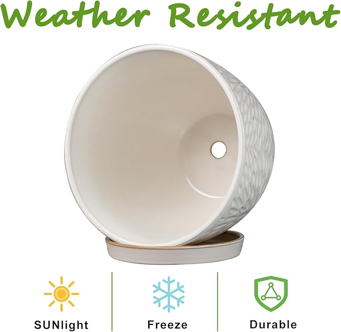 - Durable Ceramic: This 10 inch plant pot has a high-temperature firing for excellent air permeability, as well as frost and can be used for long time, making it nice for both outdoor and indoor use