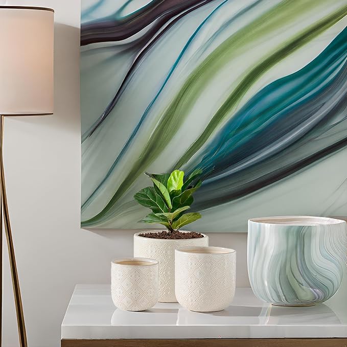 Docrin Ceramic Plant Pots Indoor:6.5+5.3+4 Inch Planters with Drainage Holes for Home /Office - Set of 3 / White