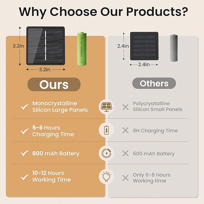 - Memory Function & Wide Application: These solar lights outdoor waterproof with built-in memory chip save the last modes setting and no need to reset mode every day. Perfect decoration for patio, garden, Christmas, holiday, wedding, party and other celebration occasions