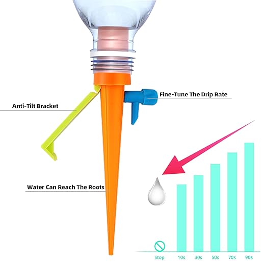 - 【Suitable for all bottles】The automatic watering spikes can be used for almost all sizes of bottles, and you can choose the bottle according to the amount of water the plant needs daily.