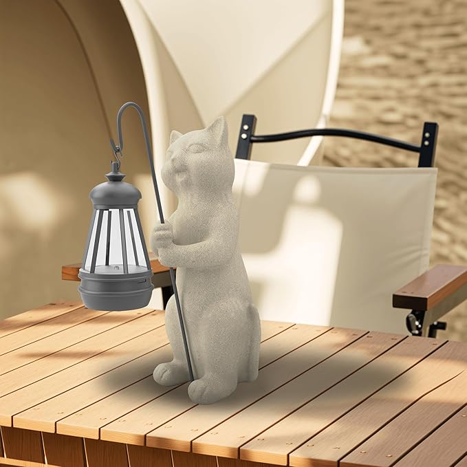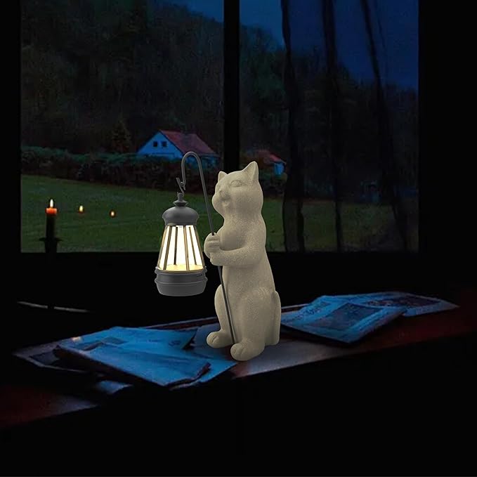 Solar Cat Garden Statue 10 Inch Porch Patio Decor for Outside Yard Decoration Outdoor Unique Housewarming Gardening Birthday Gifts for Cat Lovers Women Grandma