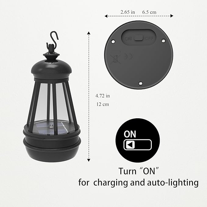 - Portable Size & Easy Operation: 8.1"ร3.5"ร9.8". For the first use, turn the switch to โONโ, simply leave it charging in the sun (in case the energy runs out after a long period of time out of the sun during transportation), and it will automatically light up at dusk