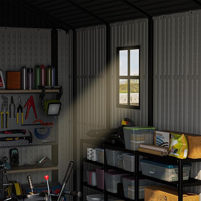 - Window design: Lets in natural light, reducing the need for extra lighting๏ผProvides a pleasant view๏ผOffers added security with a view of the shed's contents.And the position of the window can be adjusted according to your needs with the wall panel