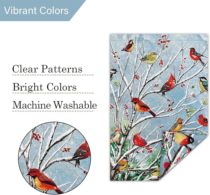 - For Winter Christmas Decorations: Bring the beauty of Christmas holiday to your outdoor space with our enchanting garden flag featuring tree adorned with charming cardinal birds. Add some seasonal atmosphere to your home decor, add a colorful, bountiful touch of the season to your home and garden.