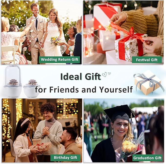 - 【Unique Choice】Compact sleek design, High quality, beautiful box, nice gift for mothers day, A Unique Gift for wedding return, graduation, festivals, and birthday!! Smart plant pot and easy to get the beautiful succulents, it's also a great gift for kids, grandma, grandpa, dad, mom, friends, and yourself!