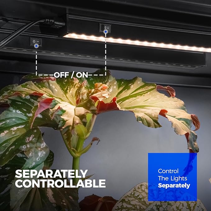 - Individual Control: Each T5 grow light fixture is equipped with individual on/off switches, allowing you to control the lighting based on each plant's specific needs for optimal growth