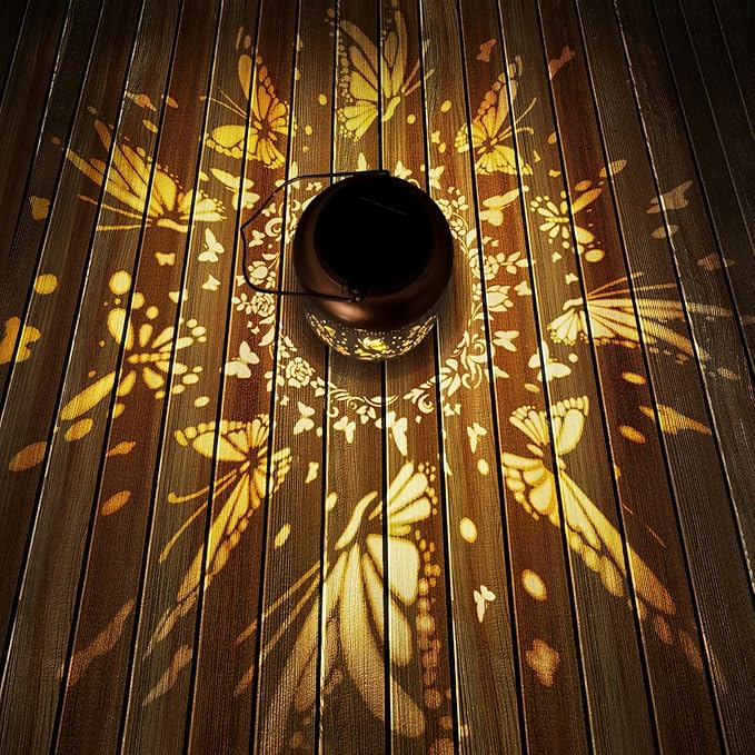 - Mothers Day Gifts for Women: The retro appearance, with gold copper color and hollow out metal veneer, the solar lantern casts bright and warm light in darkness, accompanied by gorgeous and graceful butterfly patterns