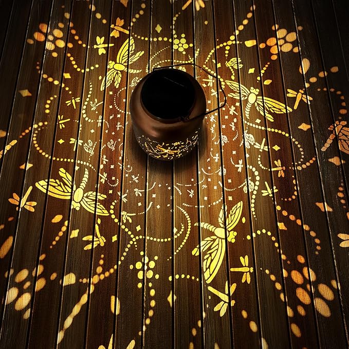 - Mothers Day Gifts for Women: The retro appearance, with gold copper color and hollow out metal veneer, the solar lantern casts bright and warm light in darkness, accompanied by gorgeous and graceful dragonfly patterns