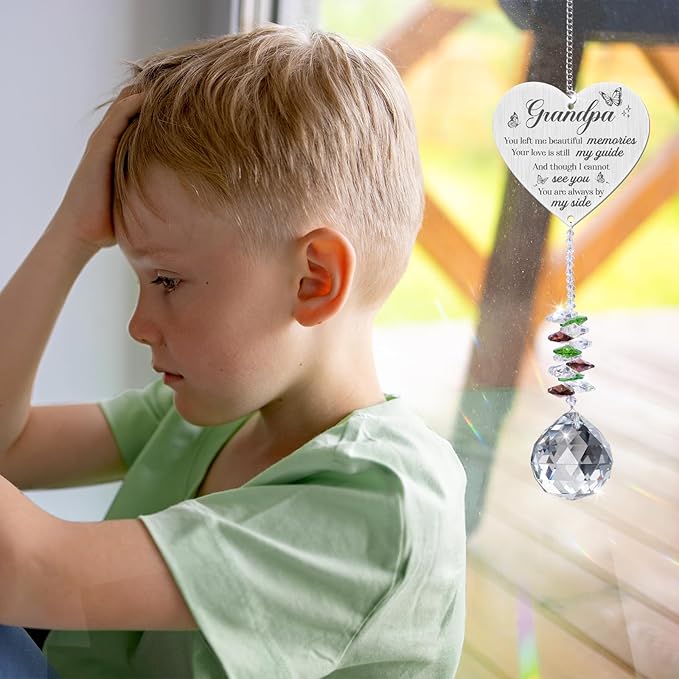 - Suncatchers for Windows Hanging: The memorial hanging crystal suncatcher can be hung anywhere. The perfect commemorative gift does not require any assembly, just peel off the transparent protective film on the stainless steel plate and you can use it.A small, thoughtful gift can speak volumes and show that you care and are thinking of someone who has lost a Grandfather at a difficult time, as well as providing something tangible that can be kept and treasured forever.
