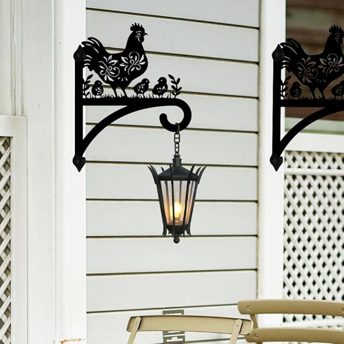 peacoblue Iron Plant Hangers Hooks for Outdoor Indoor Hanging Plants Flower Fern Pots Lantern Bird Feeder 12"x15" Weather Resistant Metal Wall Holder for Porch Garden Farmhouse(Hen and Chicks)