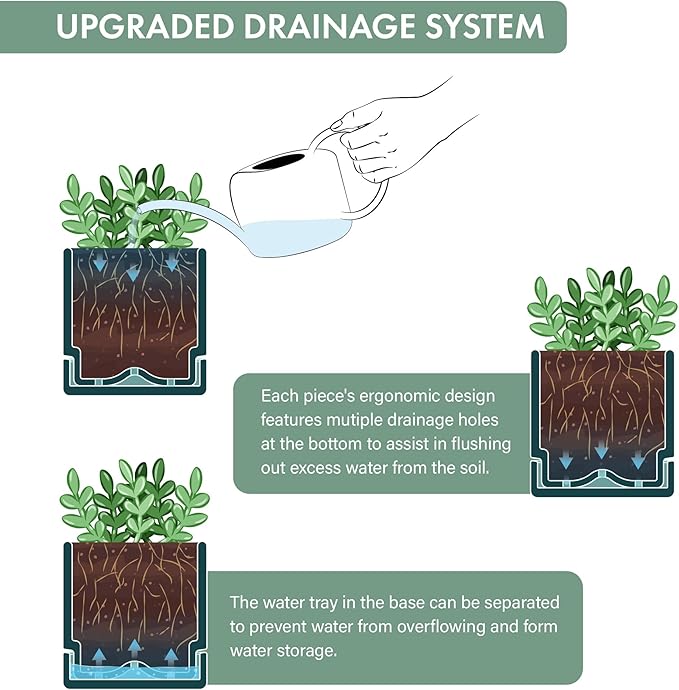 - Excellent Drainage and Tray: The pot features strategically placed drainage holes at the bottom, along with detachable saucers that fit perfectly. This ensures optimal drainage for your herbs, making it ideal for window herb gardens.