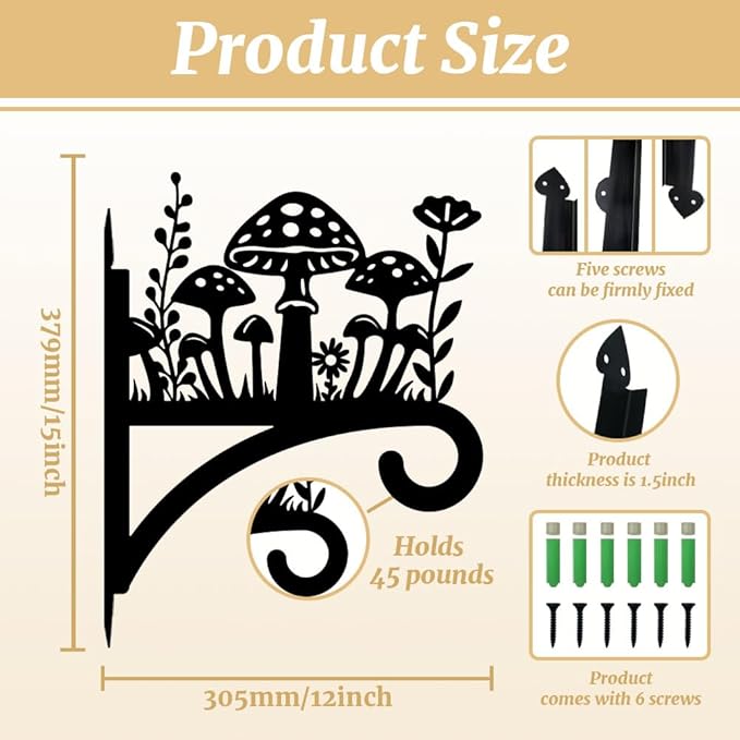 - 🍄Easy to Install: The plant hanger installation is a breeze. It packed with 6 screws for 5 holes so you just need screw them into the place where want to install it