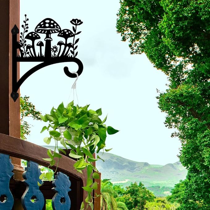 peacoblue Iron Plant Hangers Hook for Outdoor Indoor Hanging Plant Flower Fern Pot Lantern Bird Feeder,12"x15" Weather Resistant Metal Wall Holder for Porch Garden Farmhouse(Mushroom and Wildflower)