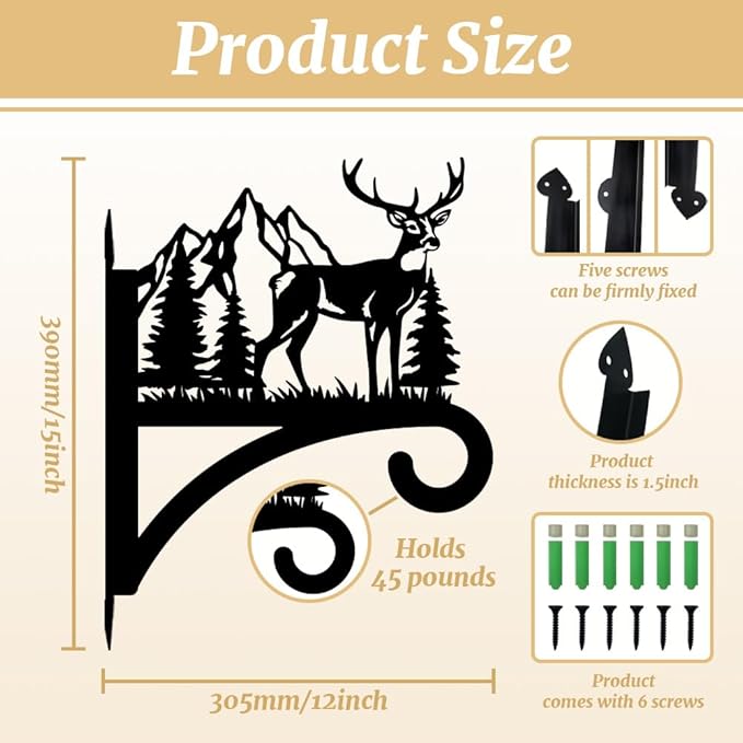 - 🦌Super Sturdy with a 45lbs Load-bearing: Our plants hangers(deer with forest and mountain) are made of high quality iron with a special coating and max load 45lbs, weather resistant and rust resistant