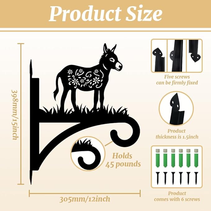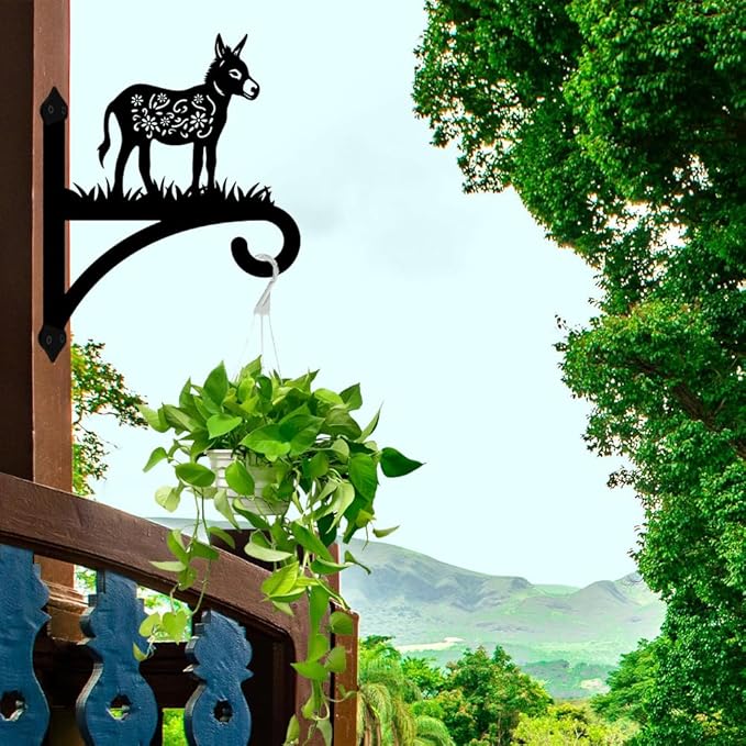 peacoblue Iron Plant Hangers Hooks for Outdoor Indoor Hanging Plants Flower Fern Pots Lantern Bird Feeder Wind Chime,12"x15.7" Weather Resistant Metal Wall Holder for Porch Garden Farmhouse(Donkey)