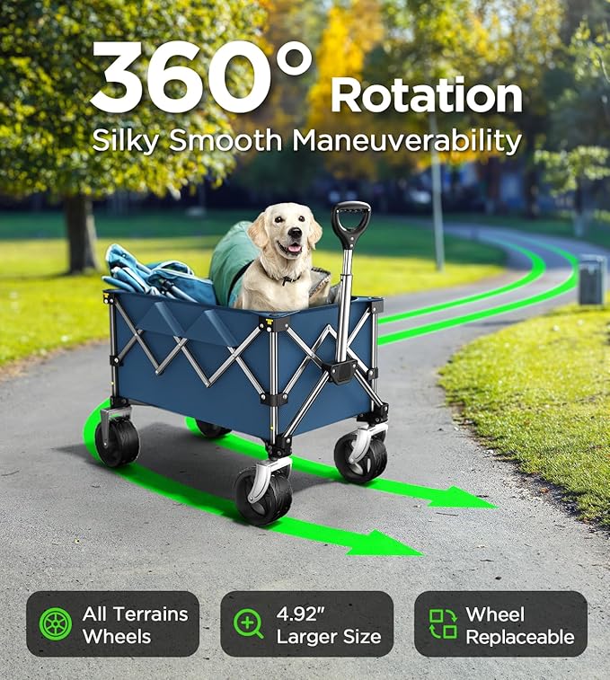 - Compact & Collapsible Design: This wagon easily folds down and is lightweight, making it simple to store in your car trunk, garage, or closet, and convenient to carry, conserving space efficiently