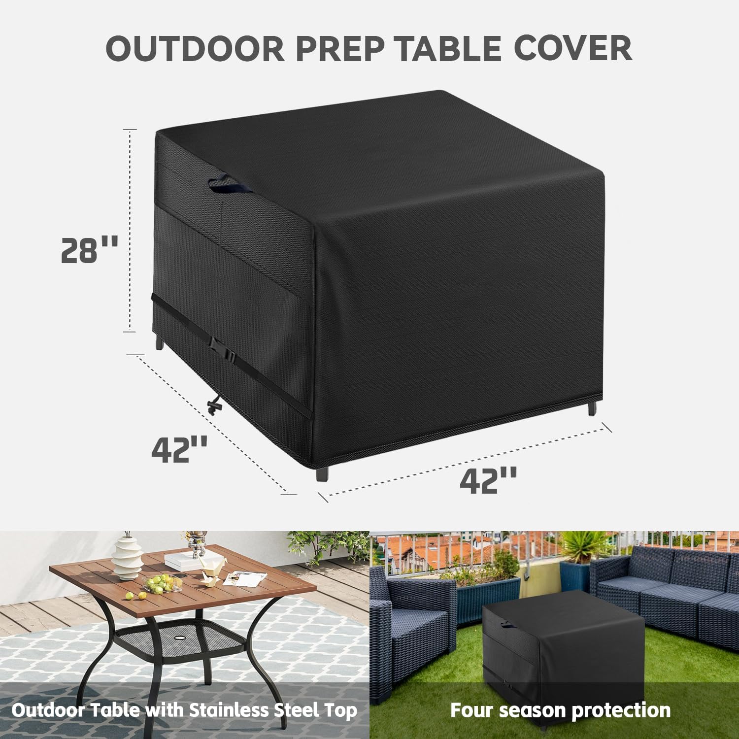 - WEATHER PROTECTION - Use this waterproof outdoor table cover to shelter your square outdoor table from rain, snow, UV light, dust and rust. This polyester cooking table cover has a water proof and UV protected fabric