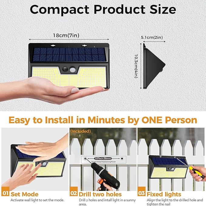 - Faster Charging-Longer Illumination:This solar motion activated light boasts a supercharged solar panel with a 20-22% conversion rate, meaning it charges up quicker during the day. That translates to longer illumination at night, keeping your outdoor space brightly lit for enhanced safety and security