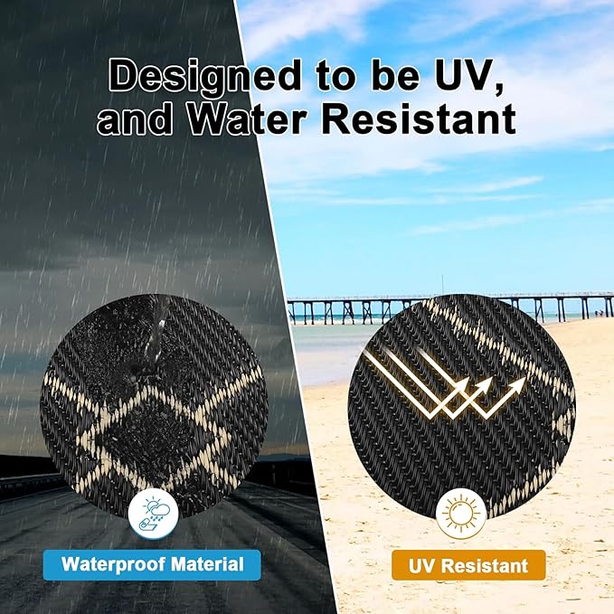 • Premium Material Outdoor Doormat: This reversible outdoor doormats are made from high quality recycled plastic straws and be woven tightly, durable enough, no fade, water resistant. It's soft and comfortable to walk on barefoot.Plus, the high-end UV coating and edge heat treatment technology prevent fading and sun damage without worrying about wear and tear.