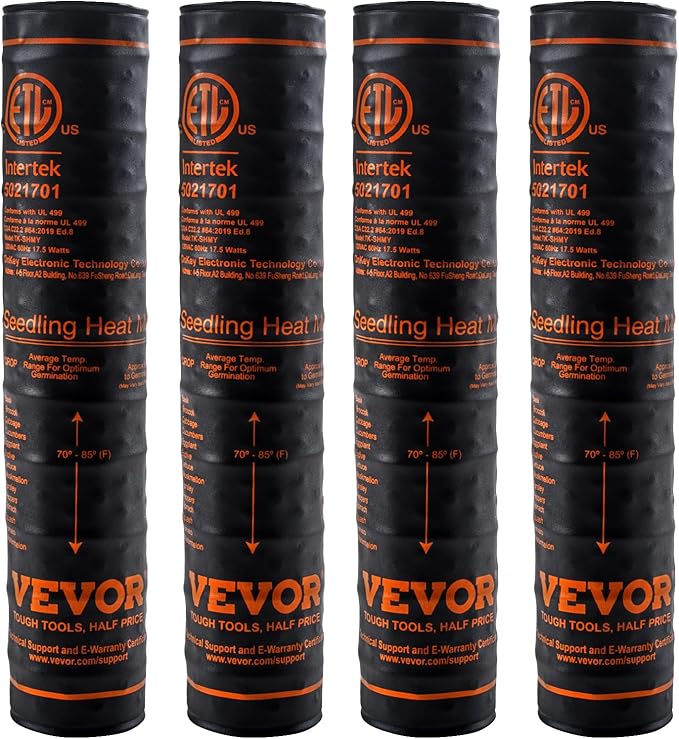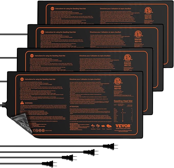 VEVOR 4 Pack Seedling Heat Mat 10"x 20.75", MET-Certified Warm Hydroponic Plant Heating Pad for Seed Starting, Waterproof Heating Mats for Germination, Indoor Gardening, Greenhouse