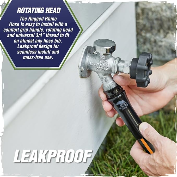 - LEAKPROOF: no need to worry about leaks and mess; hose features leak free rotating head and universal 3/4 GHT Garden Hose Thread fitment for easy install that grips tightly to almost any hose bib