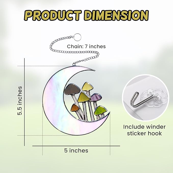 Sensory4U Mushroom Moon Stained Glass Suncatcher - Earth Tone Modern Window Hanging Wall Art - Home Decor or Garden Suncatcher for Natural Light Reflection