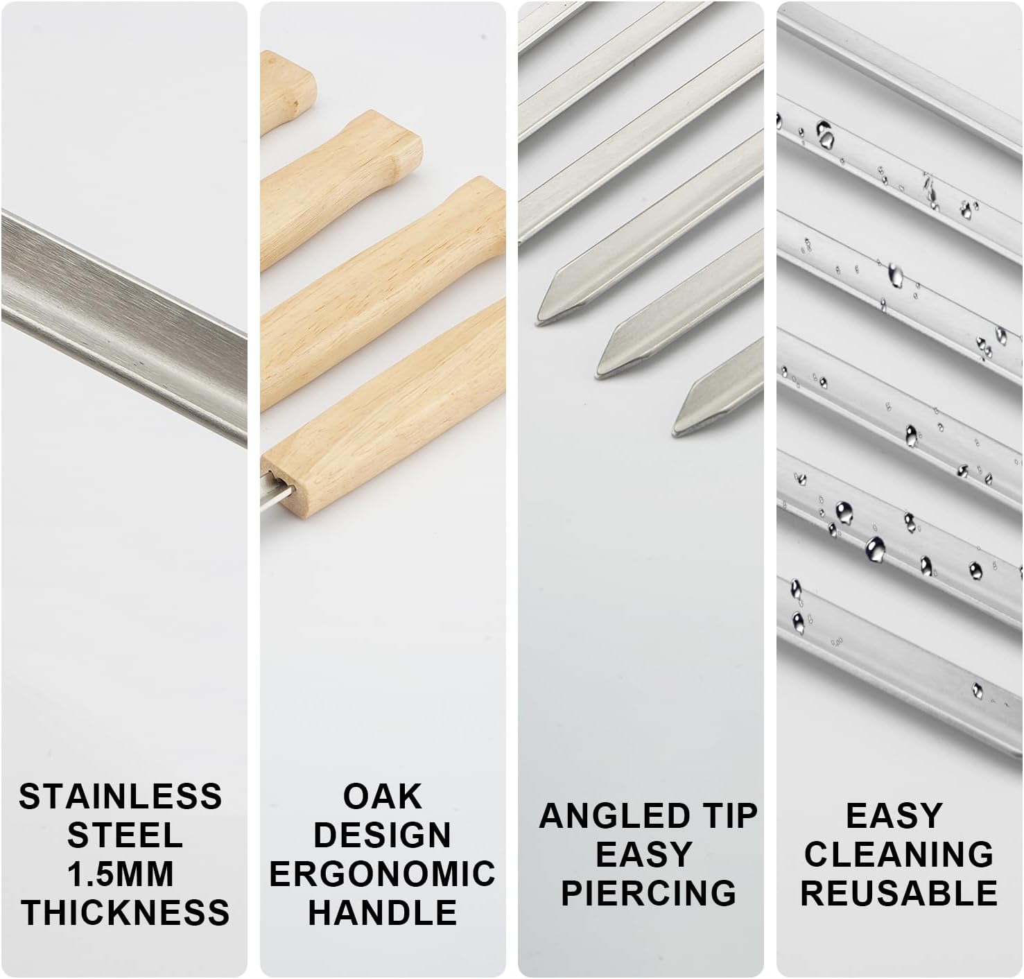 - 【High Quality】Our metal skewers for Grilling are made of premium stainless,with real Wood handle. which is food grade,anti-rust, high temperature resistance and long lasting.Well polished on edges around, safe to use.
